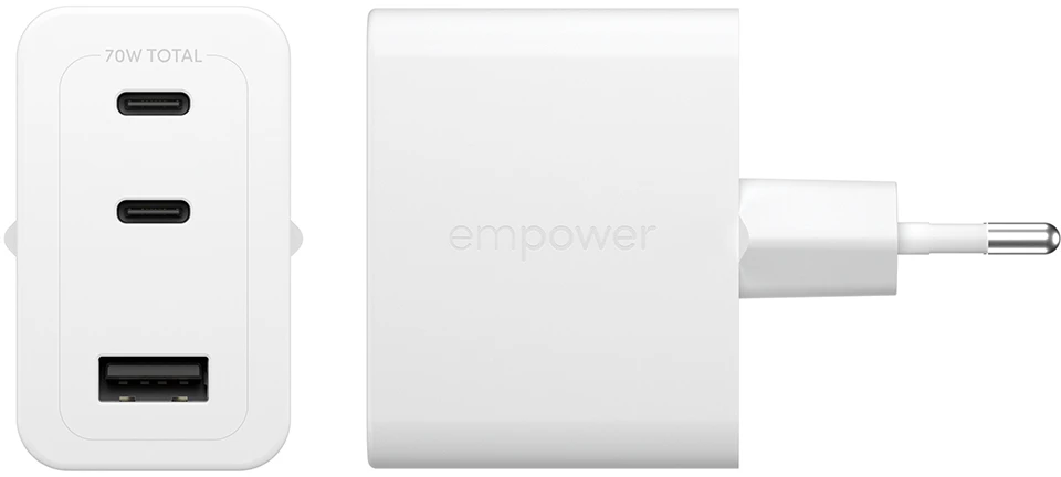 Mit 70W Power Delivery lädst du dein Handy in nur 30 Minuten von 0 auf 50 %. Die Temperatur wird in Echtzeit überwacht – und bleibt im Schnitt 10 Grad unter dem internationalen Standard. Sicher, smart und entspannt. Und das Beste? Es besteht zu 75 % aus recyceltem Kunststoff (PCR).