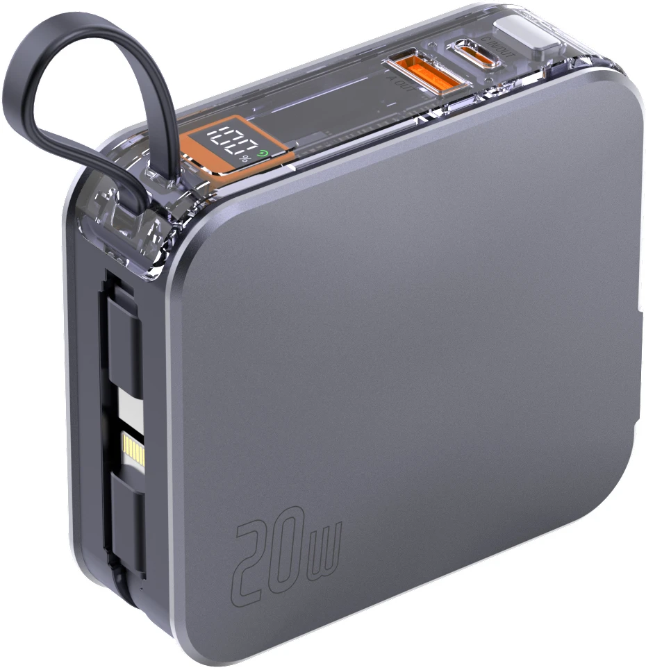 4Smarts Powerbank Pocket mit integriertem USB-C Kabel Spacegrau